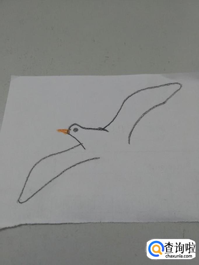 从脖子两侧向两边画两条相交的曲线,表示海鸥舒展的大翅膀。