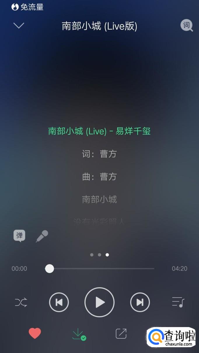 我们如果只看歌词写真,那么手指向左滑,就会出现歌词写真界面,如下图所示。