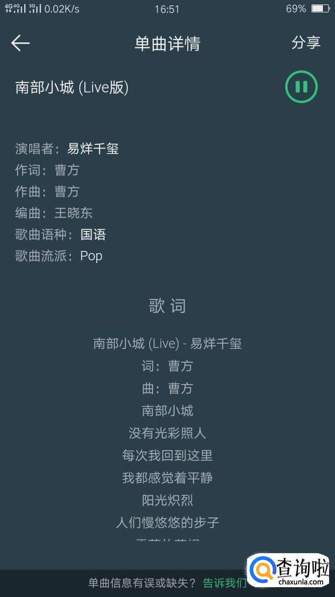 小编再给大家说个小技巧,向右滑播放界面,就会进入歌曲介绍界面,这里有该歌曲的发行时间、来源、演唱者等。