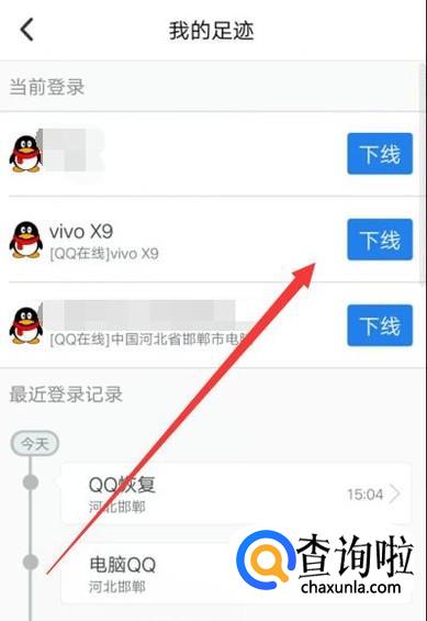 进入之后,选择手机在线的位置,点击“下线”即可,如图所示。