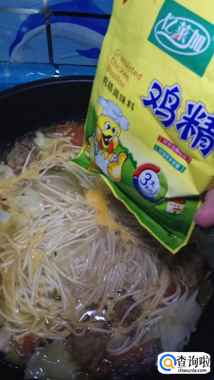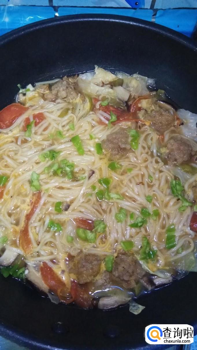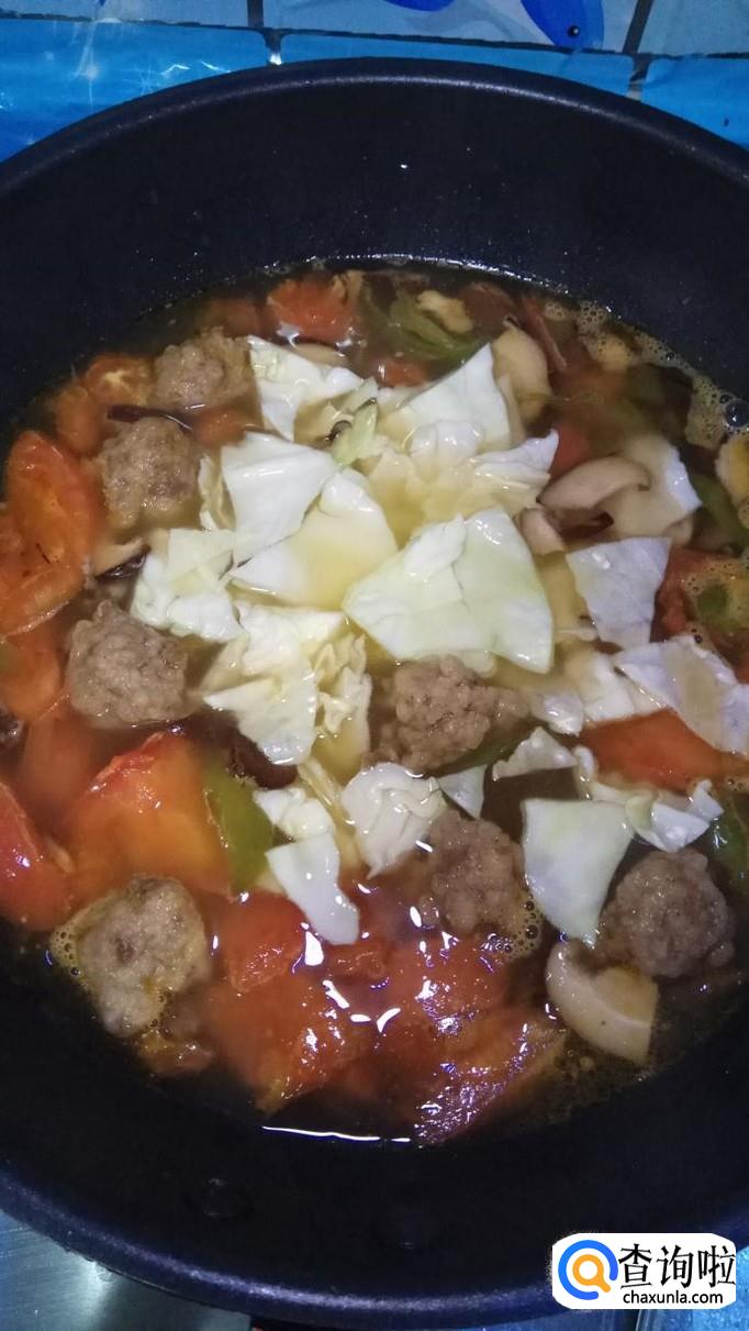 香菇适量,西红柿适量,牛肉丸子适量,蒜适量,青椒适量,包菜适量,盐适量,五香粉适量,鸡精适量。