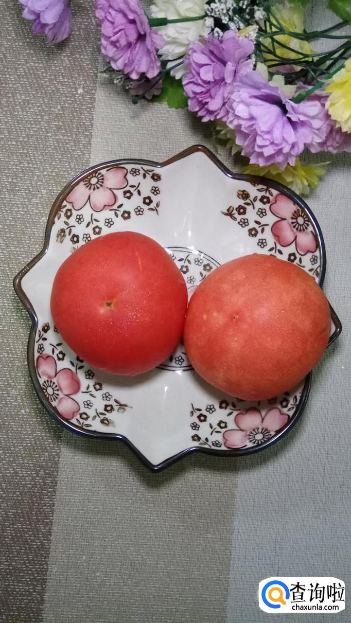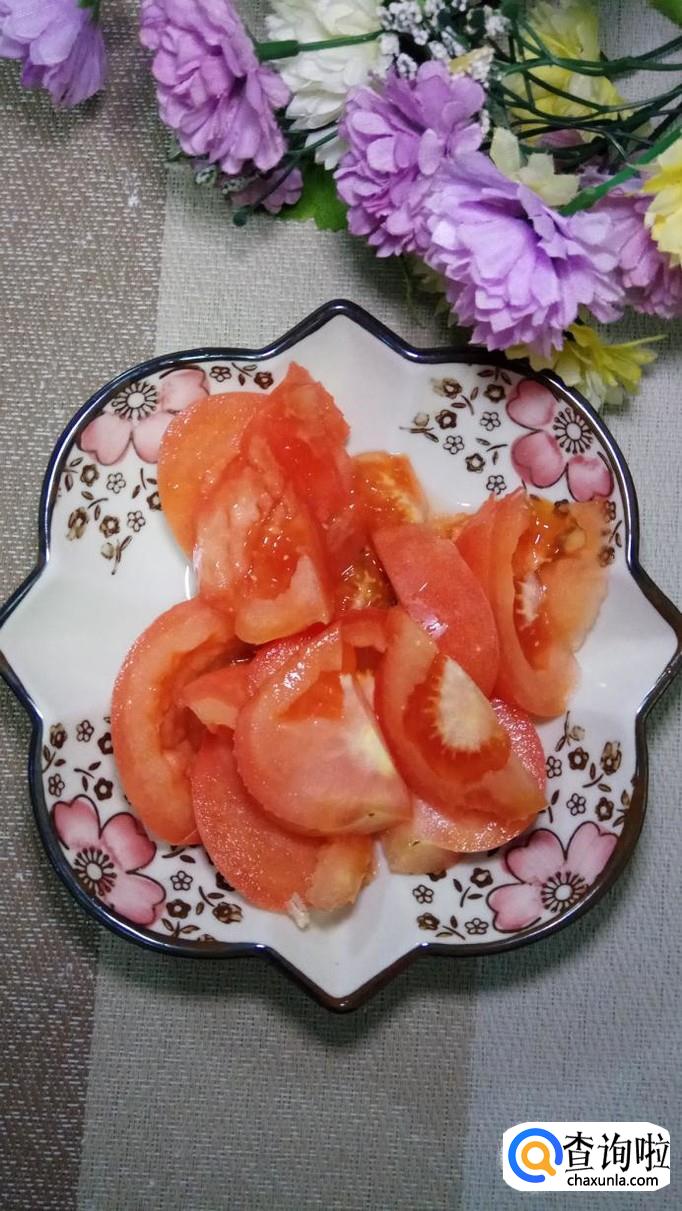 准备适量西红柿和香菇,洗净后备用,再准备适量自己炸好的牛肉丸,用开水泡一下备用。