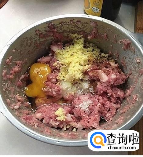 将猪肉洗净放入绞肉机搅碎,放入鸡蛋,姜蒜,搅拌均匀。