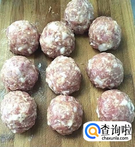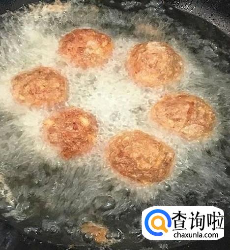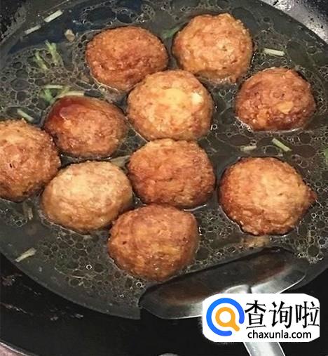 首先将油在油锅中煮熟,再将肉丸放入油锅中煎炸至微黄色,然后捞起放入碗中备用。