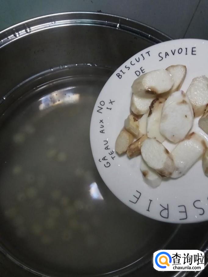红薯比较容易熟,可以晚点儿放,煮30分钟之后,倒入红薯和冰糖,再煮15分钟。