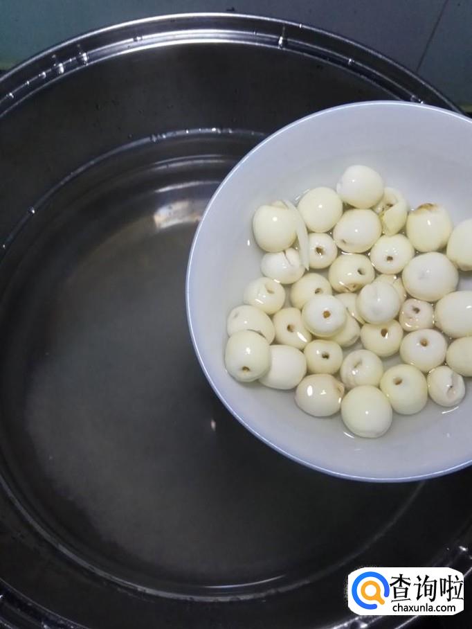 准备适量大米,用水洗净,泡一会儿,再准备适量莲子洗净,用清水泡四个小时以上。