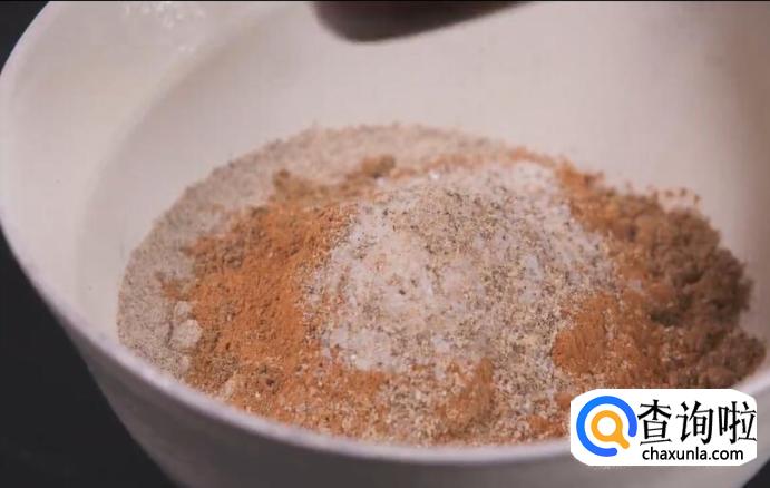 取黑胡椒粉、白胡椒粉、花椒粉、肉桂粉、海盐、现磨的黑、白胡椒碎混合,搅拌均匀,制成调味粉。