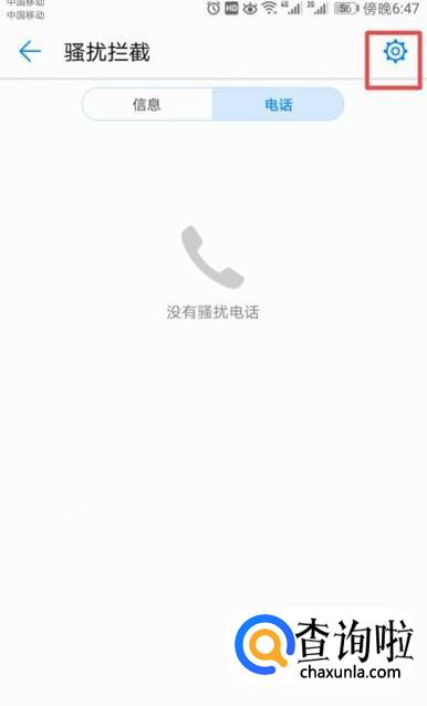 弹出的界面,我们点击右下角的设置,弹出的界面,我们点击骚扰拦截;
