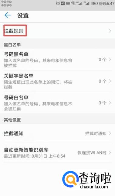 弹出的界面,我们点击拦截规则;