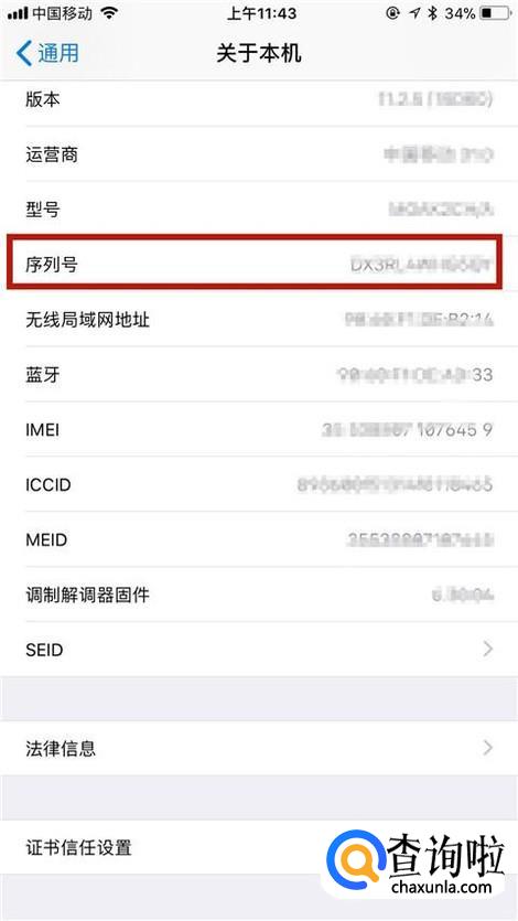 这样子我们就可以查询到我们苹果8的序列号了。