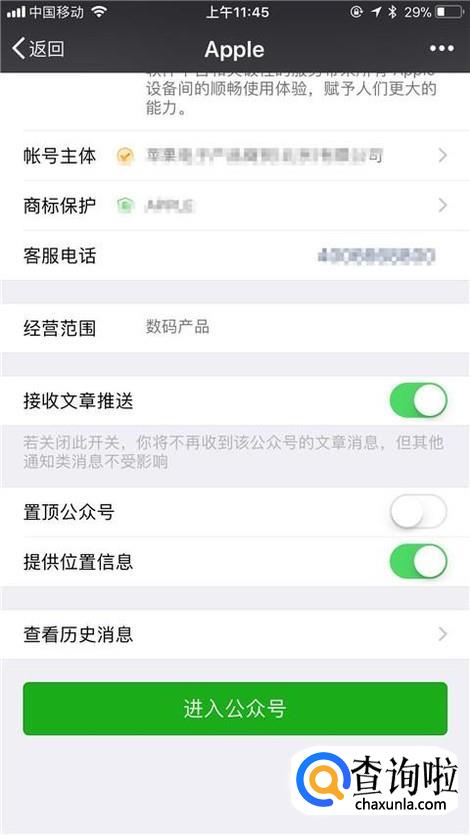 你也可以通过微信关注Apple公众号查询我们手机的序列号。