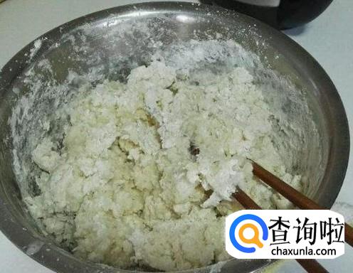 将面粉放在盆中,慢慢加入热水,边加边用筷子和面,用筷子搅成小团后,用手揉面,直到和成面团,然后放在盆中醒一会儿。