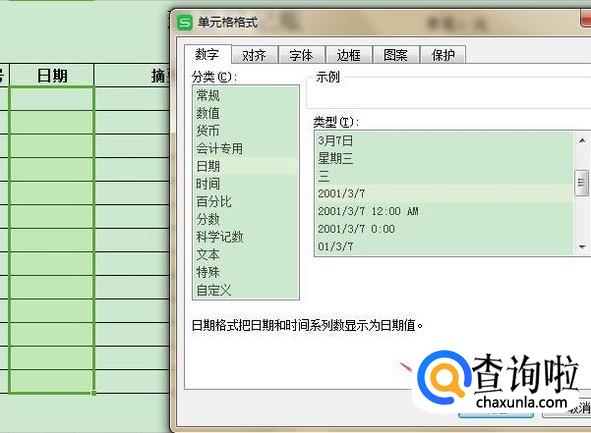 选中日期那一列,右击并选择“设置单元格格式”,修改日期格式,并点击“确定”按钮。