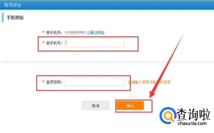进入下一界面之后,填写好新手机号码和登录密码之后,点击“确认”,进入下一界面,如图所示。