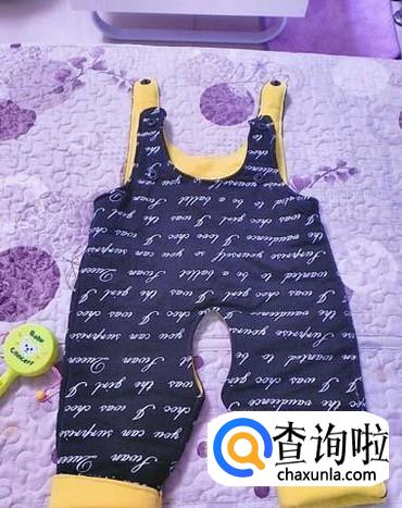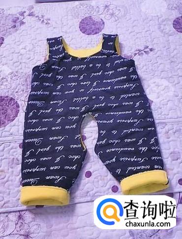 缝好之后,再在背带上各钉两个扣子,方便宝宝穿的时候调节长短。然后就大功告成了。