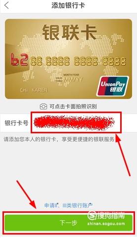 然后就可以添加自己的银行卡了,在框里输入自己的银行卡号,然后点击“下一步”,如下图所示。