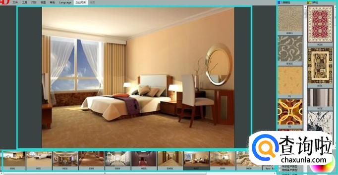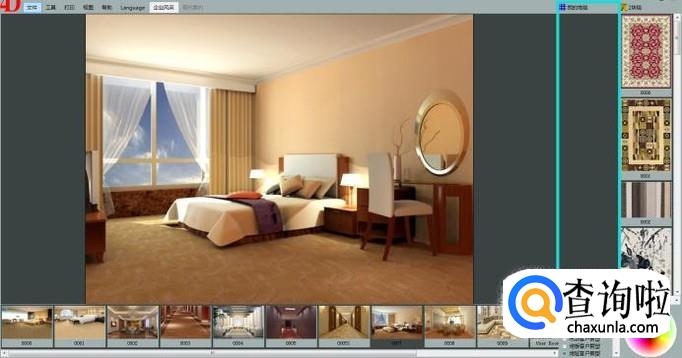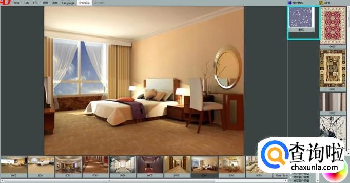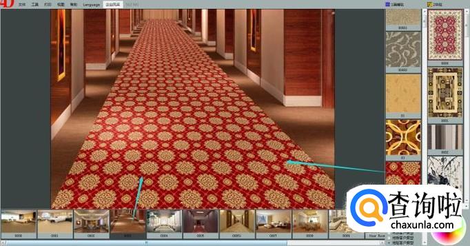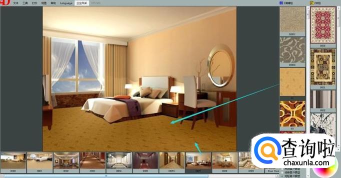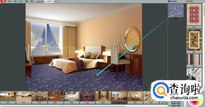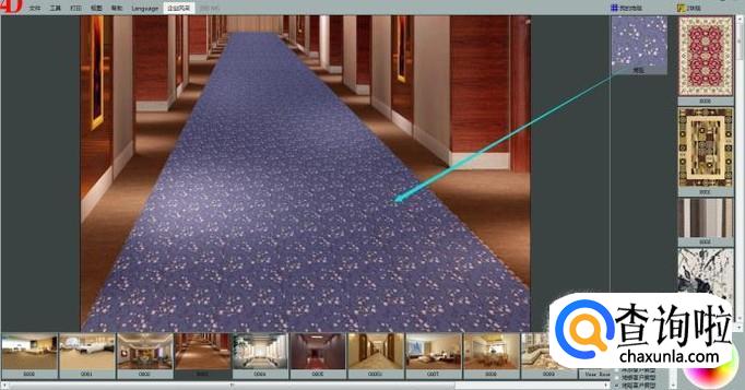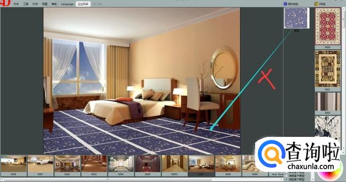 这里我们选择一款房型图,鼠标左键点击选中一款地毯产品,拖动到房型图中地面位置即可展示