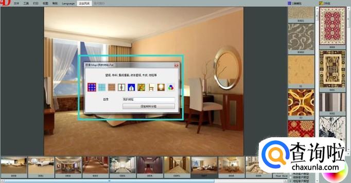 创建完分组后,我们鼠标右键点击自己分组下面的区域,选择“添加材料”,将事先放在电脑中的地毯产品图片鼠标双击即可完成添加