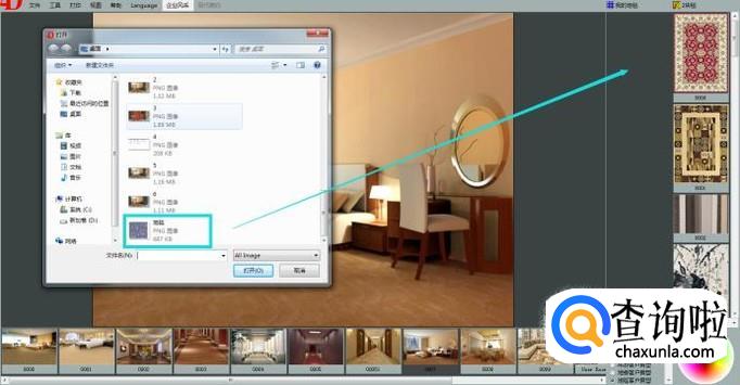 下面我们添加自己的地毯产品进来做效果,首先我们要用手机或者相机等工具拍照自己的地毯产品,将图片保存在电脑上