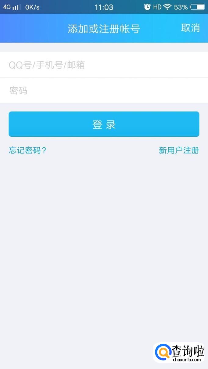在手机中打开自己的qq软件,进入到登录界面。点击右下角的新用户注册。