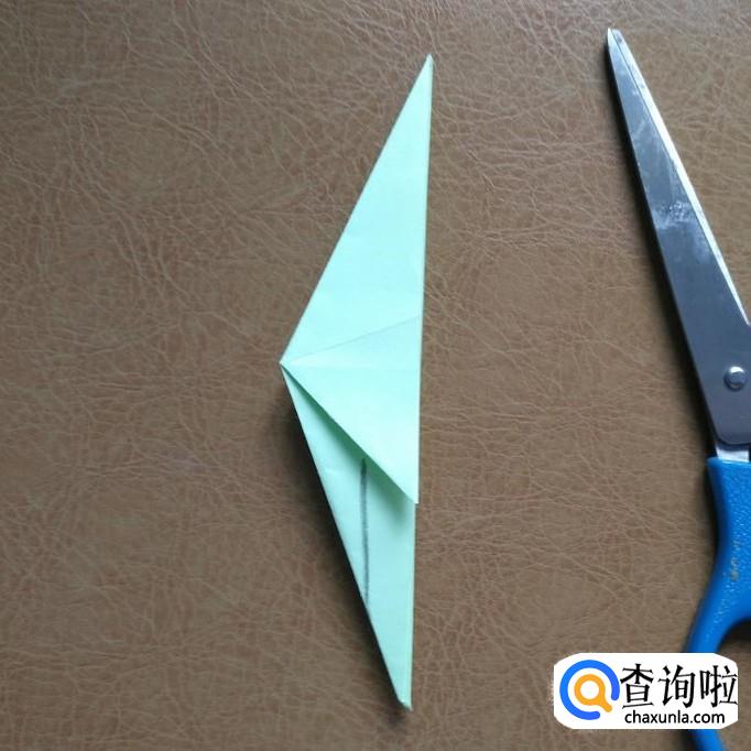用剪刀将折纸底下尖角沿线剪开。
