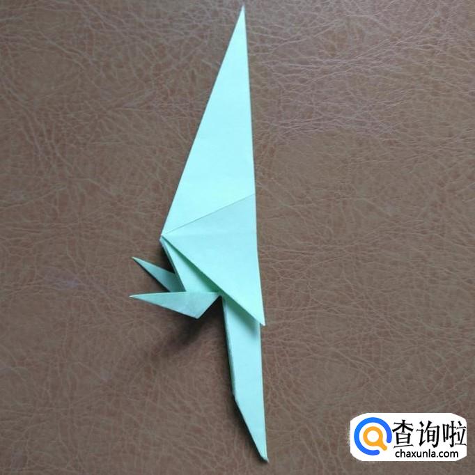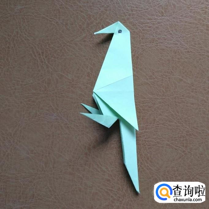 把上面的尖角向下压折,然后画上眼睛,啄木鸟就折好了。