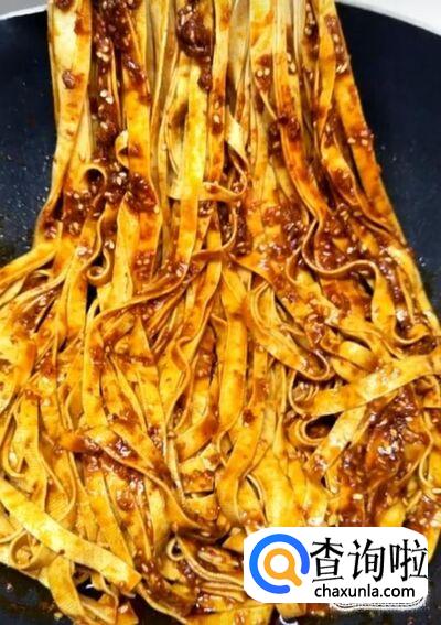 最后我们将搅拌好的料汁浇在豆腐皮上面,抓拌均匀,美味的油泼干豆腐皮就制作完成啦!
