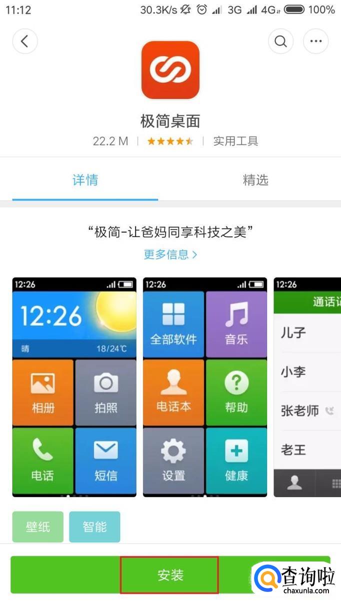 接下来,系统将自动跳转至应用商店,下载安装极简桌面安装包,此时需要等待一段时间。