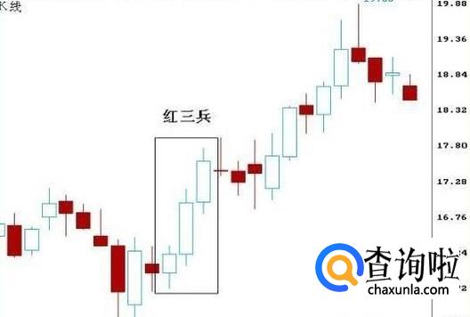 上涨红三兵,一般情况下,个股经过一段时间盘整之后,在相对的低位出现连续三根阳线,往往是上涨的预兆,后续有可能有一波上涨的行情。