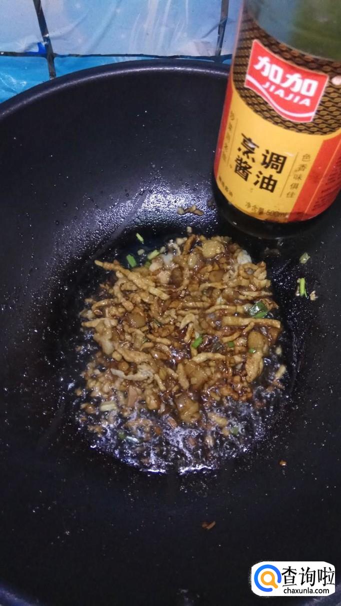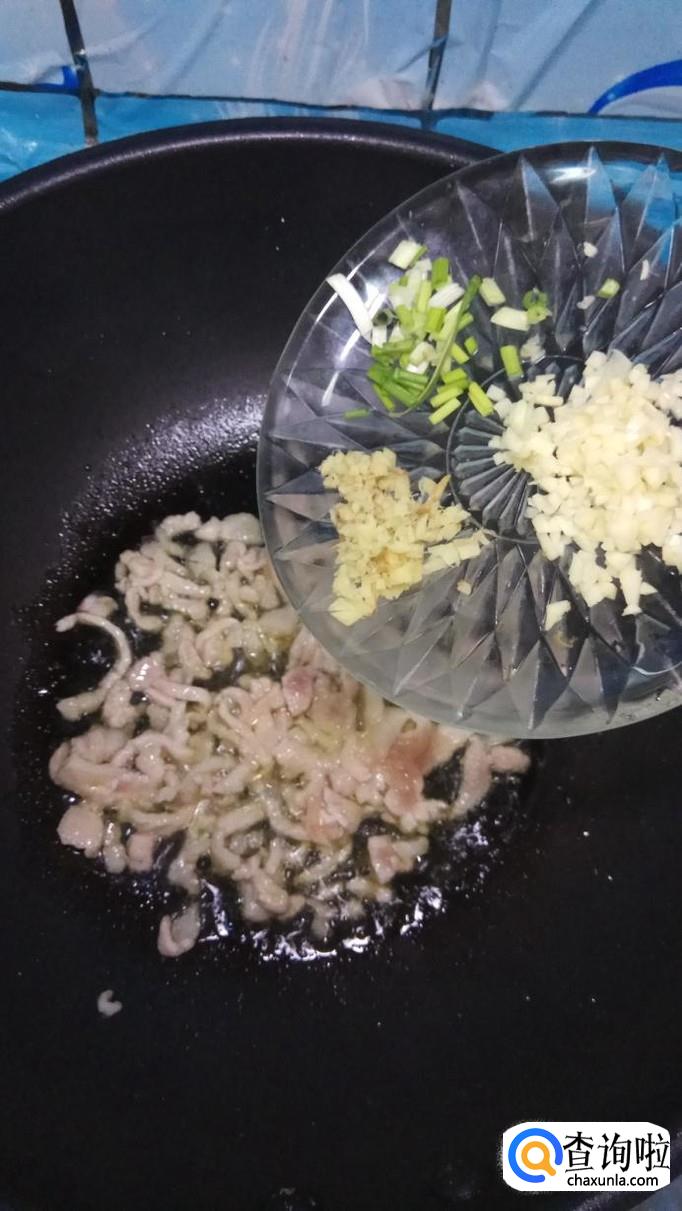 准备适量葱姜蒜,洗净后切碎。炒锅中放入适量油,油热后将准备好的肉丝放入锅中炒香,然后放入葱末,姜末,蒜末,搅拌均匀,可以加入适量老抽上色。
