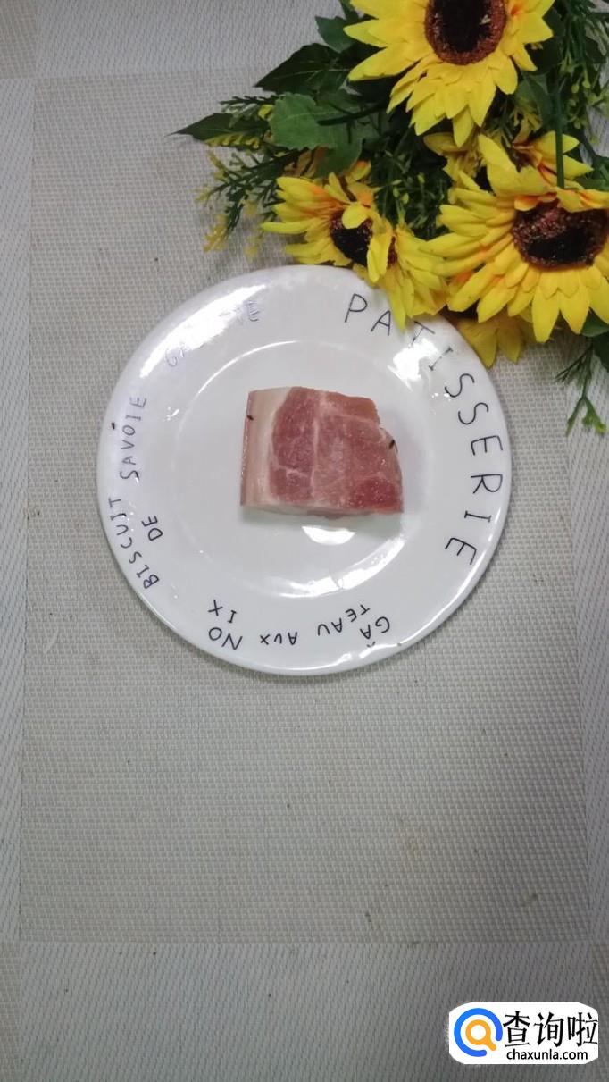 准备食材:适量五花肉,适量菠菜,适量西红柿,将他们分别洗净后,放入盘中备用。