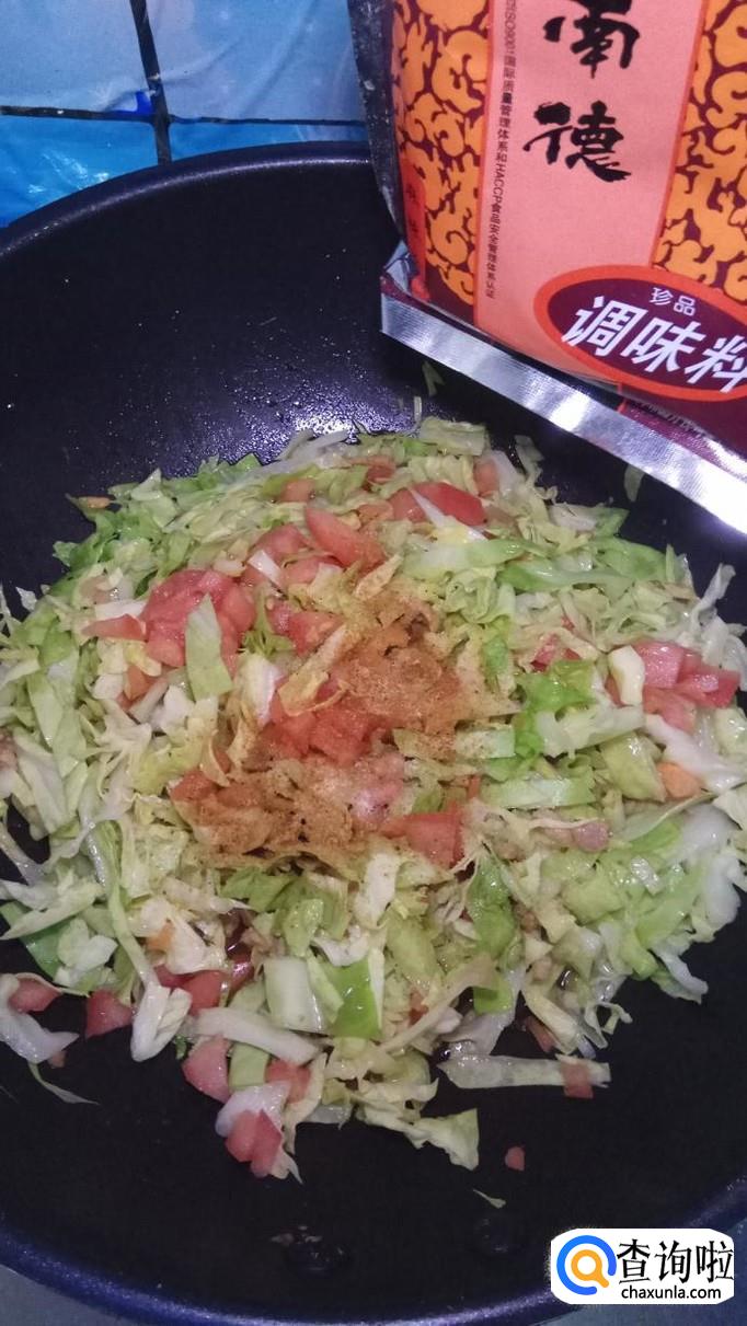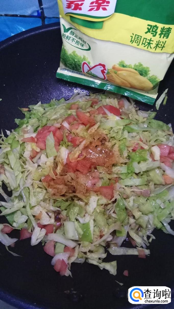 放入适量盐,鸡精,五香粉,这个量可以比平时稍微多一些,因为还要和面条进行搅拌。