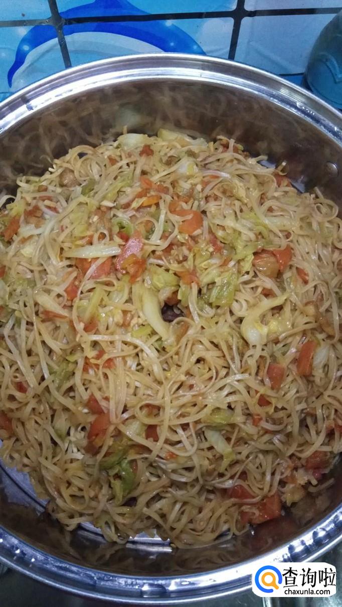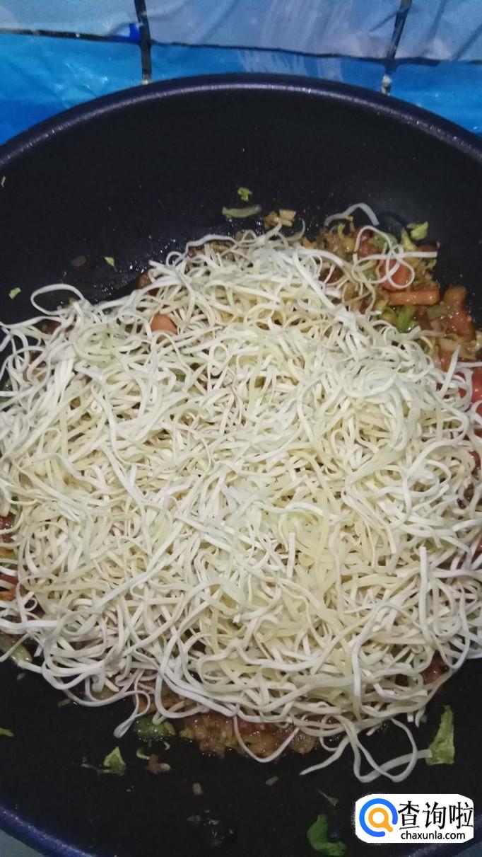 菜肴做好之后,将蒸好的面条倒入锅中,均匀的沾上一层菜汁。