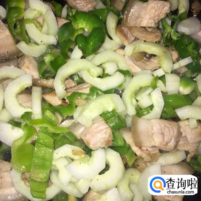 材料:五花肉 秋黄瓜 青椒 洋葱 蚝油 盐 鸡精 食用油