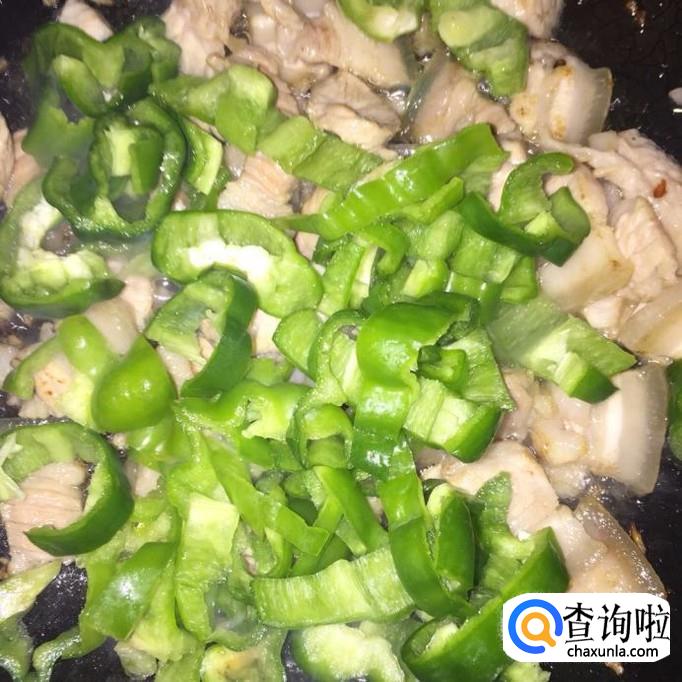 将青椒下入锅里,翻炒几下,再将秋黄瓜也下入锅里,一起翻炒;