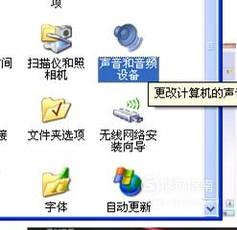 有一个地方也要设置一下,回到控制面板,点击灰色喇叭“声音和音频设备”。