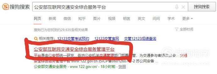 然后点击搜索结果的第一条“公安部互联网交通安全综合服务管理平台” 。