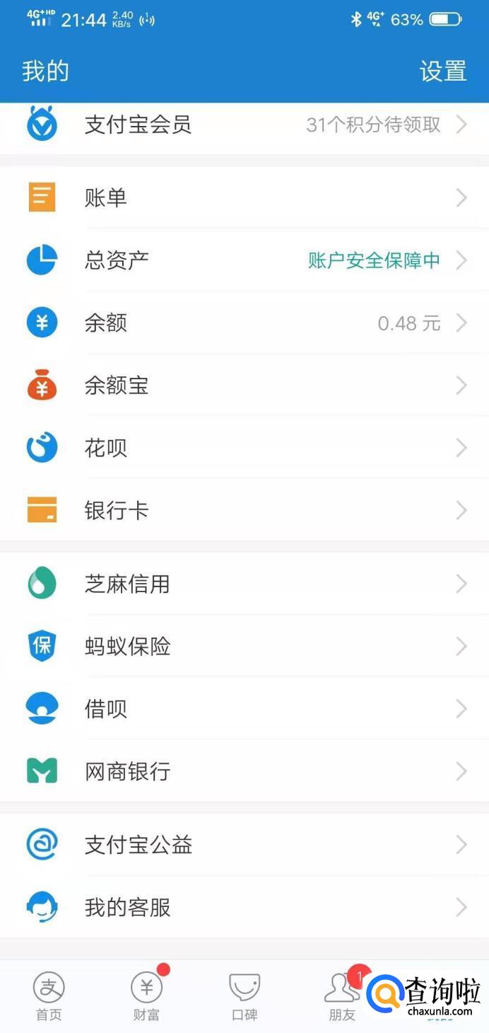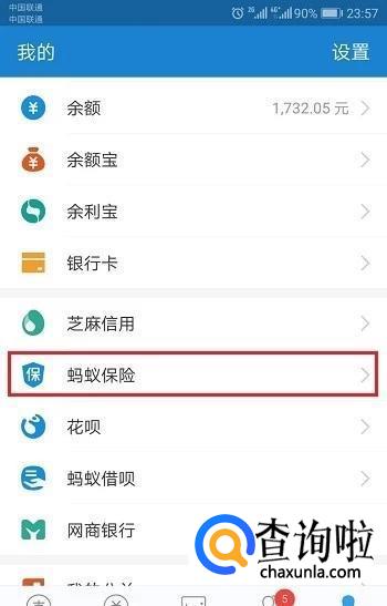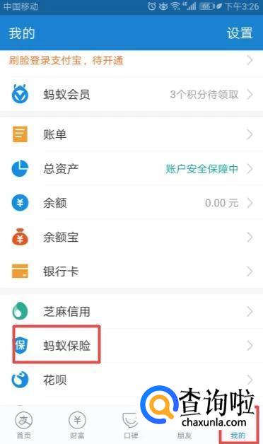 之后在我的页面可以看到【蚂蚁保险】并且点击。