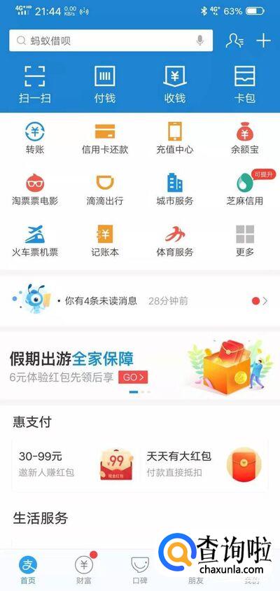 打开支付宝页面。