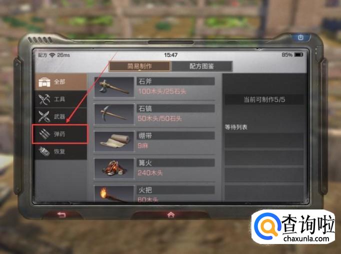 接着再点击【配方】页面的【弹药】功能。