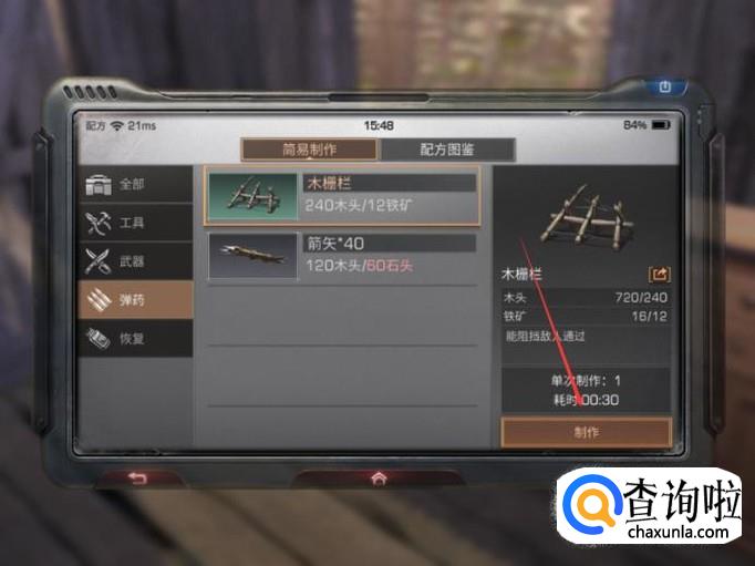 最后再点击页面右下角的【制作】按键,这样玩家就能制作出木栅栏了。