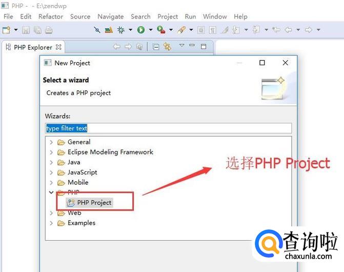 在弹出的New Project界面中选择PHP Project选项,如下图所示