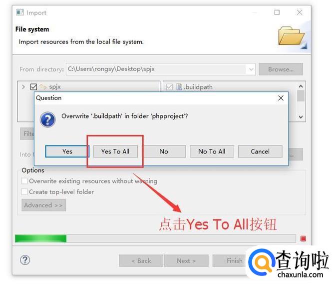 然后导入之前会进行导入的提示确认,这里我们直接点击Yes To All按钮即可,如下图所示