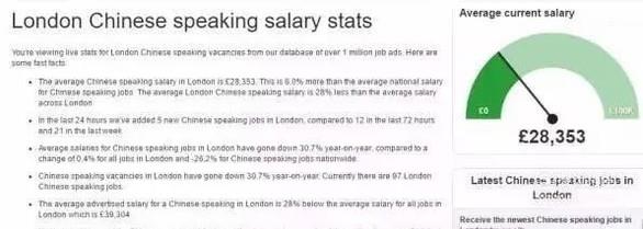 求职网站Adzuna今年的一份研究指出,那些会中文的求职者,收入不菲,平均年薪在2.8万英镑。