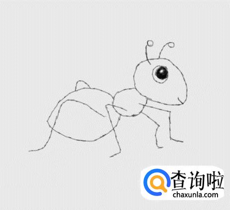 最后我们再在蚂蚁身体上画出蚂蚁的腿部,这样超级简单的蚂蚁就画好了,如图所示: