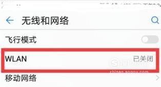 返回“无线和网络”界面,我们会发现WLAN后面显示了已经连接的wifi名称,上面也显示了wlan的标志。
