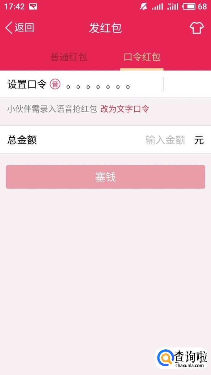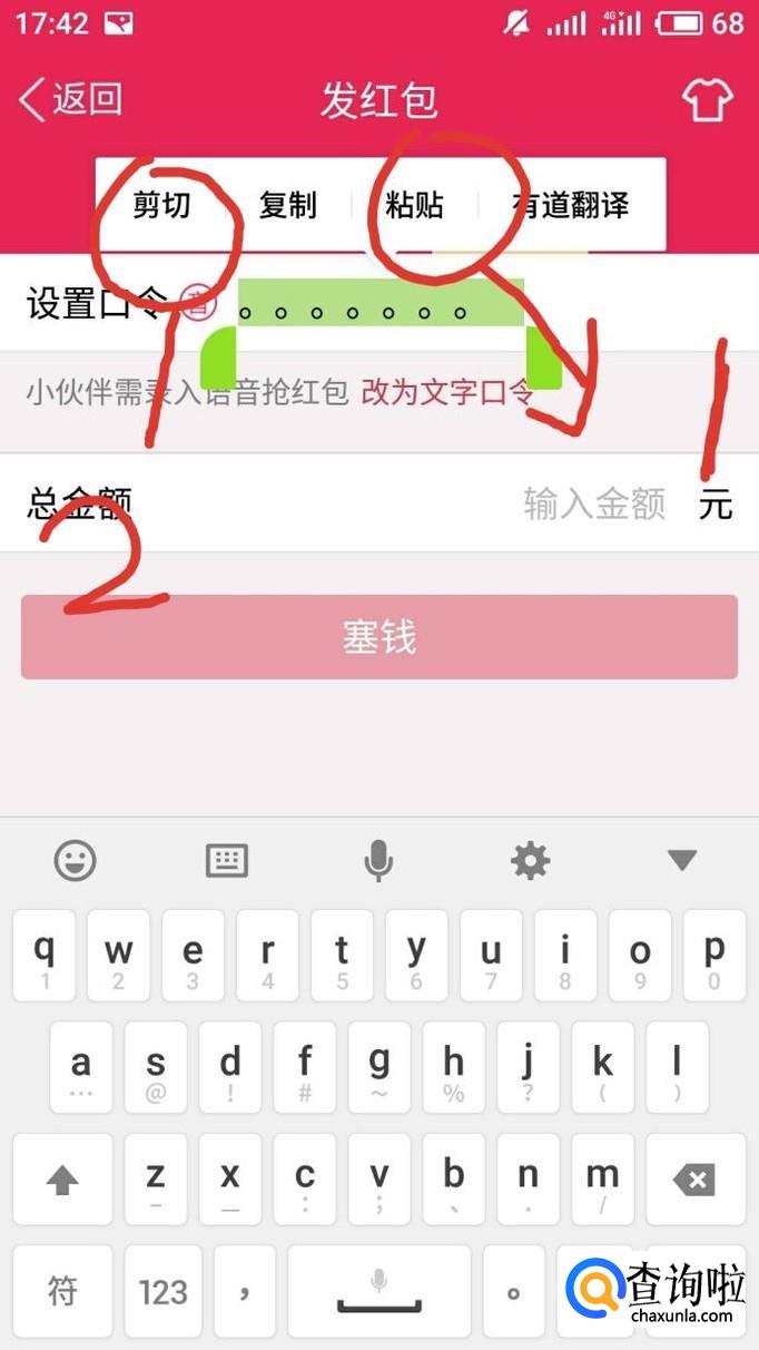 将无效的红包口令剪切黏贴到红包口令输入框,输入金额就可以发出不能被领取的口令红包。