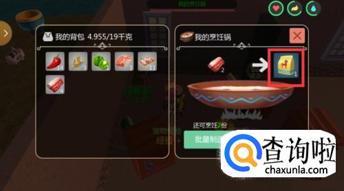 最后将小麦饲料,辣椒饲料和优质肉块三种材料放进烹饪锅中。