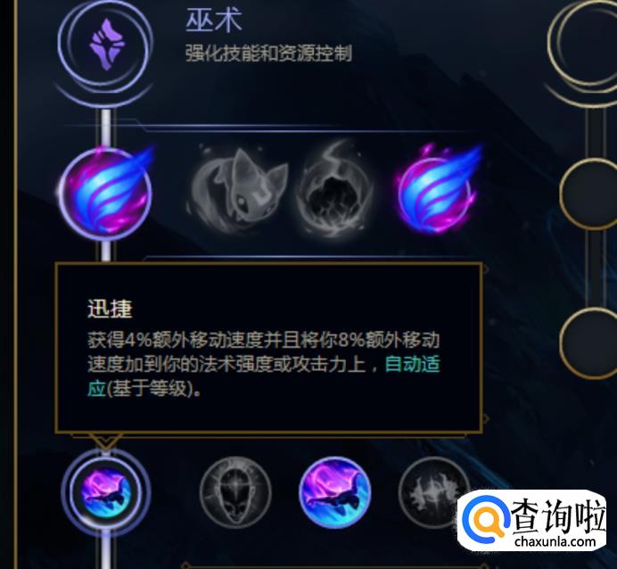 飞哥诺手还有一个符文就是迅捷,迅捷可以获得4%的额外移动速度,而且还可以降低8%的额外移动速度,加成到你的法术强度或者攻击力上,这一点可以利用迅捷来提高它的机动性,还可以打出q的外环命中对手提高伤害。