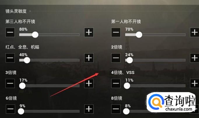 在开火设置还有开镜后的灵敏度都设置成差不多,主要设置的点是在自由镜头下的灵敏度一般是百分之八十,然后是四倍镜和八倍镜的设置一般是百分之十左右。